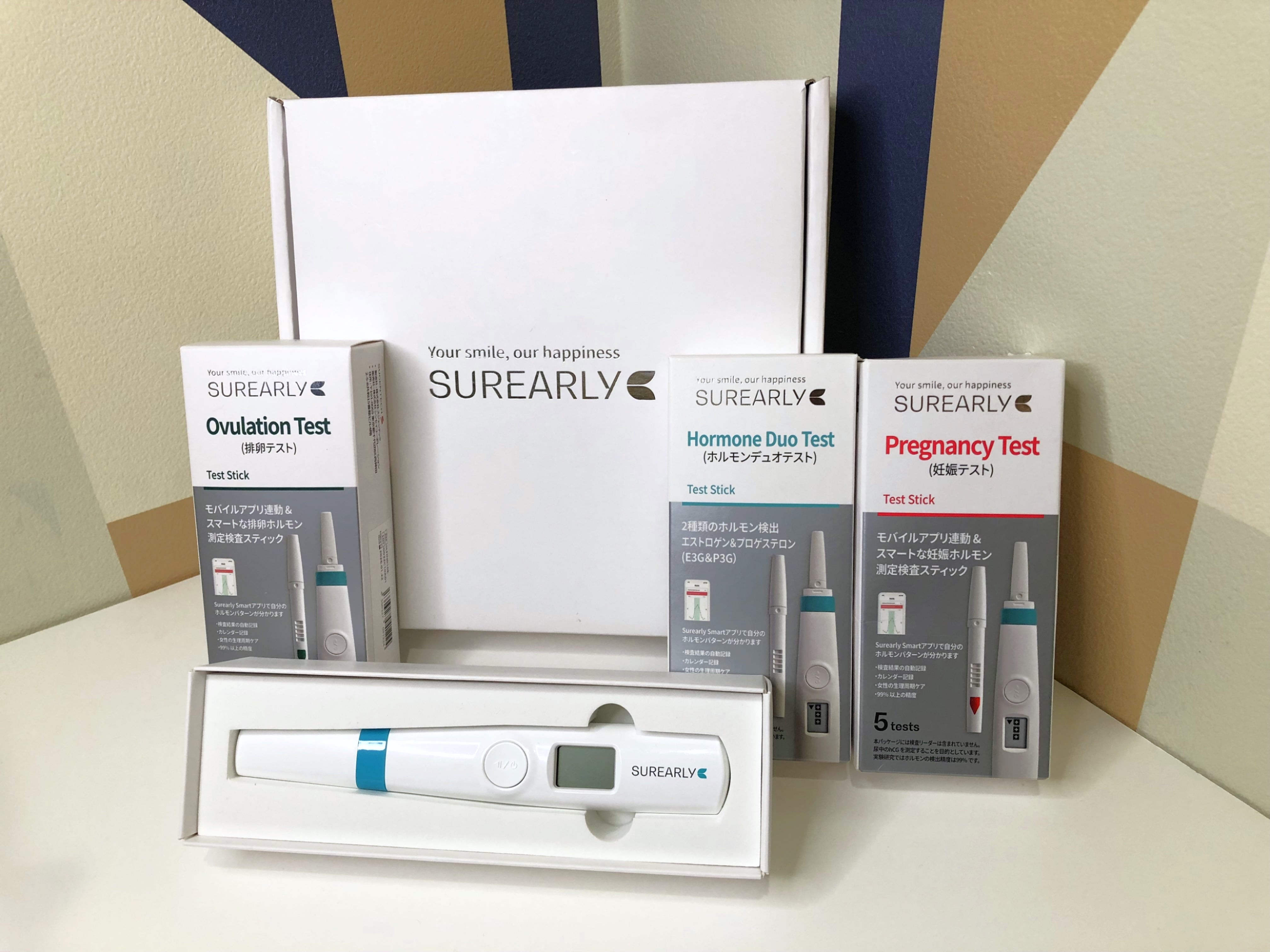 妊活をしている方、生理の悩みを持つ方向けのお得なスターターキットです。 Duo検査スティック (エストロゲン/プロゲステロンの測定) 10本、LH検査スティック (排卵状況の確認) 10本、hCG検査スティック(妊娠状況の確認)5本と、検査デバイス 1台がセットになっています。 検査スティックを検査デバイスに挿入し、清潔なカップに採取した尿に検査スティックの先端に浸すだけで、スマートフォンアプリに検査結果が送信され、データが蓄積されます。 使用方法は特設サイト「surearly.jp」の「使い方」を参照ください。 生理が終了したら、1日おきにDuoスティックでエストロゲンとプロゲステロンの分泌推移を測定してください。 エストロゲン/プロゲステロンの基本となる分泌周期と異なる場合の懸念については、特設サイト「surearly.jp」に記載していますので、参照ください。 エストロゲンが上昇してきたら、排卵期に近づいていると考えられますので、そこから毎日LHスティックでLHの分泌量を確認してください。一般的に急激なLHの上昇(LHサージ)を観察することで排卵の状態と時期を確認できます。※ 通常であれば生理期となる時期に、hCGスティックで1日おきに3~5回測定をしてください。 一般的にhCGの上昇を観察することで妊娠の可能性を確認できます。※ ※結果はあくまでも参考ですので、判定は専門医にて行うようにしてくだだい。 ■ お手入れ/取り扱い注意事項 直射日光を避け、湿気の少ない場所で保管してください。使用前には必ず取扱説明書をお読みください。 ■ 発送・注文に関する情報や注意事項 注文後、1週間以内に発送いたしますが、天候や交通事情により遅延が生じる場合があります。ご理解のほどよろしくお願いいたします。 ■ その他の情報や注意事項 本製品は自宅でのセルフテスト用であり、医療・診断目的やそれ以外の用途(例:避妊目的)では使用できません。検査結果は参考であり、判定は専門医にて行うようにしてください。 ご質問がございましたら、ショップのお問い合わせからお気軽にご連絡ください。毎日の生活をサポートし、新たなステージへの一歩を共に歩んでいけることを願っております。